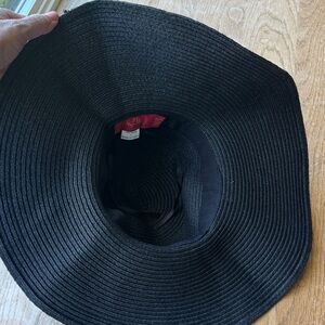 Tigerlily packable, floppy black wide brim hat with tan band