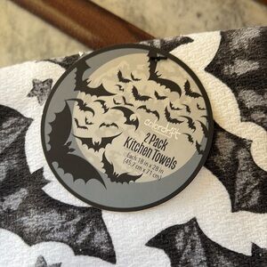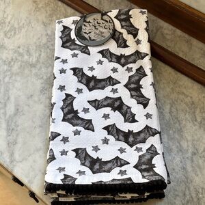 NWT SET/2 Halloween Black and White Bats Stars Goth Kitchen Hand Tea Towels