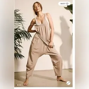 Embrace comfort and style with this casual jumpsuit. Perfect for any relaxed occasion. Color is Mocha Latte.