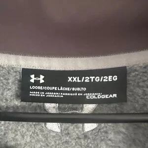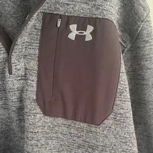 Comfortable heather gray pullover by Under Armour. Features a practical chest pocket.