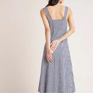 NWOT New Anthropologie Women's Gingham Midi Dress 4 Petite Seen Worn Kept Straps