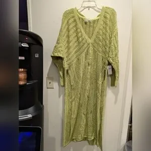 Stay cozy and stylish with this elegant green knit sweater. Perfect for layering and adding a pop of color to your wardrobe.