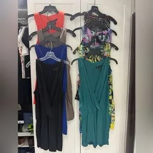Bundle of 8 BCBG rompers. They are in great condition, easy to care for. I just put them on gentle cycle and air dry on a hanger. All size Small. Three have patterns and the other 5 are solid colors. I loved wearing with oversized blazers! I don't fit in to them anymore, otherwise I wouldn't be selling them!