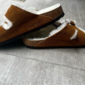 NWOT Shearling Suede Leather Cognac Color Birkenstock Slide/ Sandal