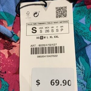 NWT. Zara Floral Print Midi Dress with Asymmetric Hem, V-neckline, thin adjustable straps, bow detail on the side, asymmetric hem and invisible side zipper closure. Size S. Ref. 8020/410. Pit to pit 18" flat, waist 15", length 49". F.