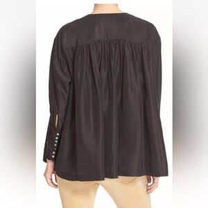 Free People Live To Tell Black Silk Button Front Long Sleeve Oversized Blouse