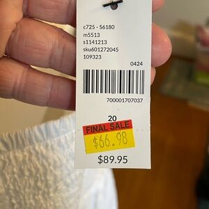 Lane Bryant size 20- flowy, dress with a floral embroidered bodice. Bought for family pictures and ended wearing something else. Beautiful and light weight for summer weather.