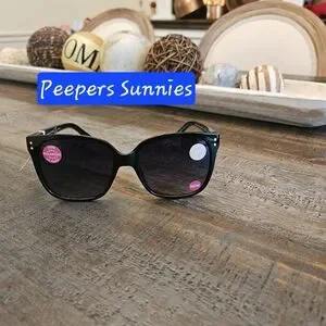 Stylish and chic, these Peepers Sunnies are perfect for any occasion. The sleek black design adds a touch of elegance to your look. These have no strength 0.00 and are polarized!