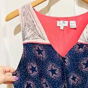 Miss Me Navy Blue & Pink Stars Beaded Peplum Top Feminine Coquette Girl Size M