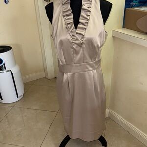 NWT Just Taylor Elegant Sleeveless Ruffle Neck Dress - beige size 12
