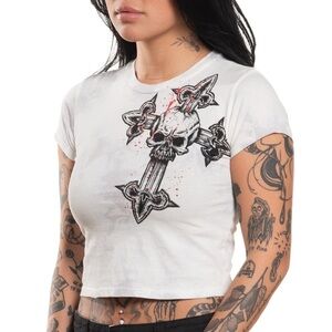 Affliction white and black cross skull baby tee #goth #grunge