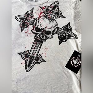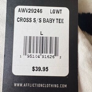 NWT Affliction Woman’s Large White Skull With Cross Short Sleeve Baby Tee