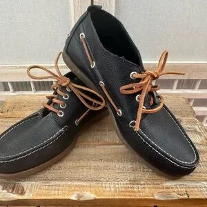 Sperry Top-Sider Black Leather Boat Shoes Lace Up Casual Size 10