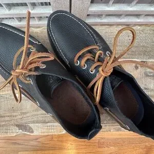 Keywords: Sperry Top-Sider, boat shoes, leather shoes, casual shoes, lace-up shoes, mens shoes, black leather, comfortable shoes, classic boat shoes, driving shoes