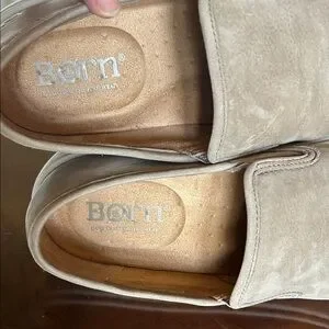 Stylish and comfortable Born men's slip-on shoes in a versatile tan color. Size 11 M. Perfect for casual outings and everyday wear. Great shoe, just bought the wrong size. Wore 2x before realizing wrong size. CLEAN,LIKE NEW. Your gain, my loss. Non smoking home.