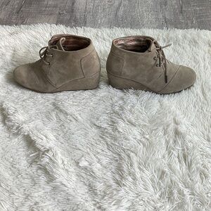 TOMS DESERT WEDGE SHOES TAUPE TAN SUEDE LACE UP