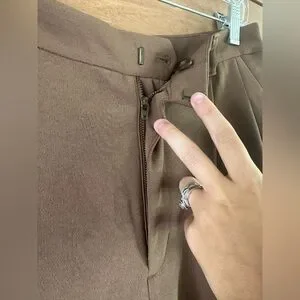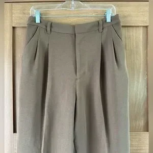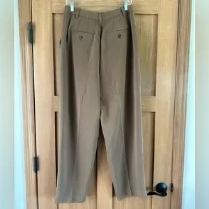 Excellent condition Madewell Tall Pleated Tapered-Leg Trouser Pants in Easy Going Crepe Light Roast Women’s Size 8Tall. In my opinion these have a slight olive undertone to them.