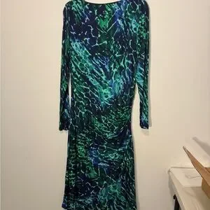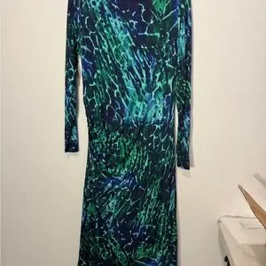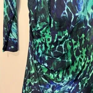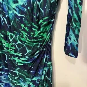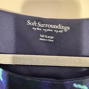 Soft Surroundings Darcy Patterned Long Sleeve Dress Size Tall XL Green Blue
