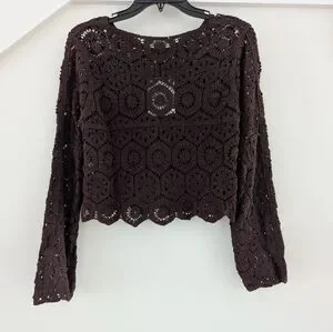 This elegant brown crochet top is perfect for adding a touch of sophistication to your wardrobe. Its intricate design and comfortable fit make it a versatile choice for any occasion.