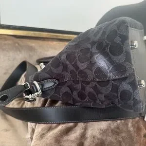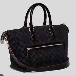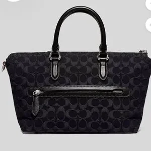 Chic Coach satchel with signature pattern. Sleek black design. Perfect for any occasion 11" (W) × 8" (H) X 4 1/2" (D)