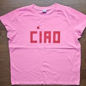 NWOT Stylish pink t-shirt featuring a bold red 'CIAO' print. Perfect for casual wear.