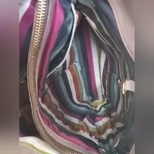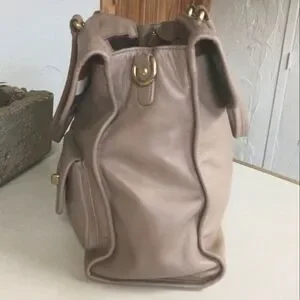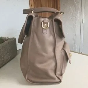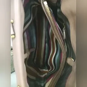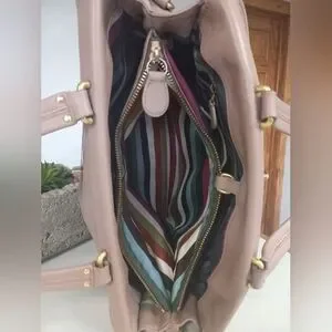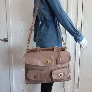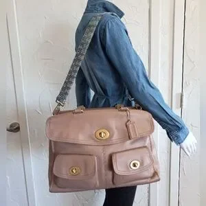 You wouldn't believe how much this bag stores, it's like a suite case but looks compact, pockets everywhere!!! The handles are comfortable to carry. 4 bottom brass feet. The strap is original, adjustable, and has a shoulder pad too. The fabric inside is Coach Striped Legacy silky fabric. So clean and pretty !!!