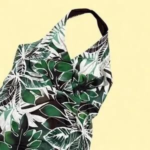 Tropical Leaf Halter Dress | Green White Black | Size M | Jones New York
