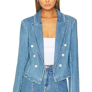 L'AGENCE Light Blue Double-Breasted Denim Jacket