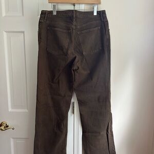 Keywords: Abercrombie jeans, brown jeans, chocolate brown denim, 90s jeans, high rise jeans, relaxed jeans, straight leg jeans, neutral denim, everyday jeans, minimalist wardrobe