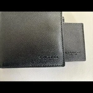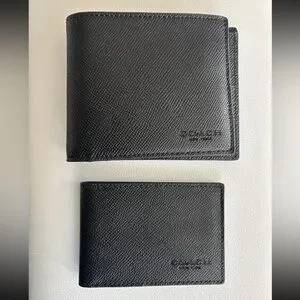 NWT Coach Men’s Calf Leather Bifold with Mini ID Wallet F64118 Black
