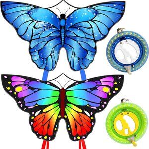Features: This set includes two lightweight butterfly-shaped kites with fun flaps that look like wings fluttering. Designed for all ages — kids, teens, and adults — it's super easy to assemble and control. Each kite measures about 55 inches long and comes with a sturdy reel and 650 ft of high-quality kite line. Perfect for windy days to get your kite soaring high!