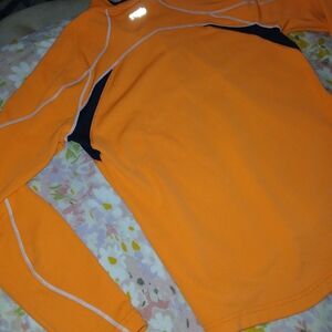 Bright orange 1/4 zip sweatshirt. Features sleek design and comfortable fit. Reflective striping and lettering for safe, visible late-night adventuring. Ideal for outdoor activities or events of any kind. Excellent condition. Size medium. The photos show the shirt in 2 different colors. The first photo that is used as the listing photo, is the true color of the item. It's not the faded orange that is shown in other pictures. 🔴