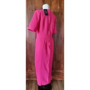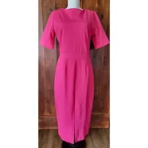 🗽 Brigitte Brianna New York Dress Women L Fuchsia Modest Midi– Made in USA Chic