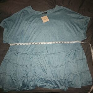 BloomChic Teal Ruffle Short Sleeve Top