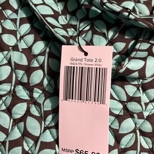 Brand new (rare find) Vera bradley 2.0 tote. Mint and brown color. Two pockets inside, one with a zipper.