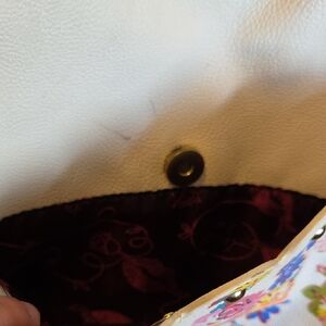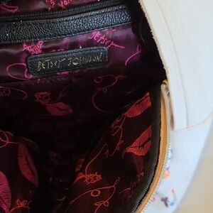 Betsey Johnson backpack with colorful floral design and scalloped edge. Perfect for adding a pop of color to any outfit. Has some markings seen in photos.