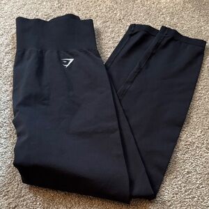 Sleek black tank top with Gymshark logo. Perfect for workouts. Black leggings with Gymshark logo and print on back band. In great condition.