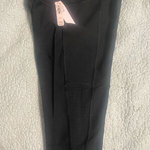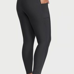 Midrise total knockout legging Victoria’s Secret 28 inch inseam, lux performance fabric, core compression waistband, perforated details at legs for airflow double side and hidden interior pockets for essentials hidden draw cord, elastic waistband, premium bonded edges . Black. Experience comfort and style with these black high-waisted leggings. Perfect for workouts or casual wear.