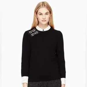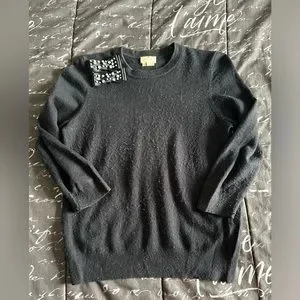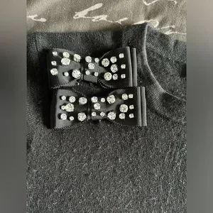 Kate Spade Black Embellished Crystal Bow Sweater Size Medium