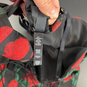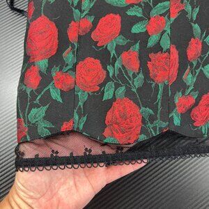 For Love & Lemons Black & Red Rose Print Mini Dress Size Med Lace-Up WhimsiGoth