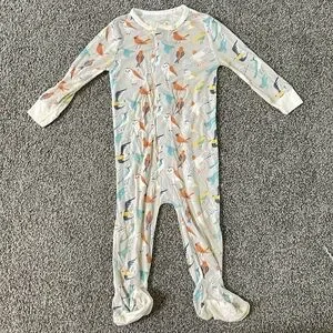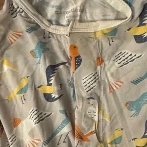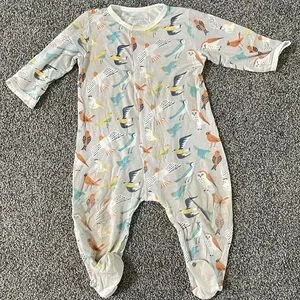 Adorable one pieces with playful mcm birds pattern. Easy magnetic closures. 3-6, 6-9, 9-12 month. Some wear and discoloration as pictured. Some stitches have been pulled but all closures still work! Priced accordingly; make an offer😊