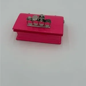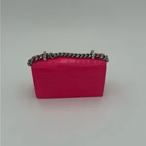 Bold pink crossbody with croc-embossed texture. Features silver chain strap and unique metallic accents. Perfect for a standout look. *** the box does have damage to it*** please ask for updated photos if you care about the box.