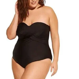 Kona Sol Women’s Black Crossover One Piece Bathing Suit Removable Straps Sz 18W