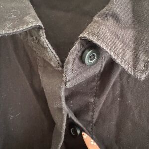 This elegant black sundress by Everlane features a sophisticated mandarin collar and long cuffed sleeves, perfect for both casual and work settings. The dress offers a flattering silhouette with its cinched waist and knee-length design, making it a versatile addition to any wardrobe. In great condition.
