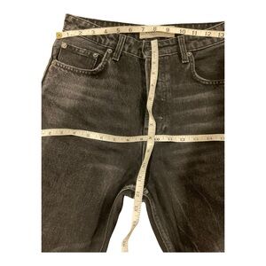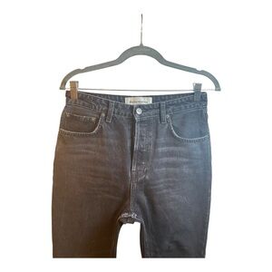 The Reformation Women’s High Rise Button Fly Skinny Jeans in black, size 27, are a stylish and trendy addition to any woman's wardrobe. These jeans feature a high-rise waist with a button fly, a raw hem, and a skinny fit, showcasing a sleek and flattering silhouette. Made of denim fabric, these jeans by Reformation are perfect for everyday wear or a casual night out, offering both comfort and style. Walk with confidence and start your day in style with these chic and versatile jeans.