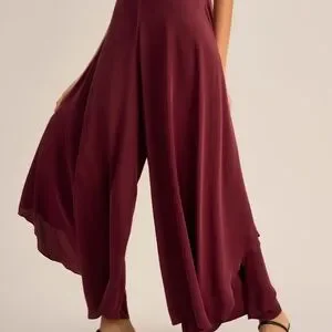 Floaty Palazzo pants in a rich, crimson red. 90% Silk and 10% Spandex. Wide leg, high rise. New with tags - missed the return window. Inseam is approximately 25 inches.