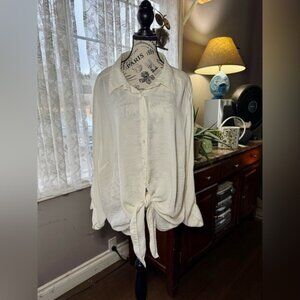 Penningtons White Button Down Shirt with Relaxed Tie Front