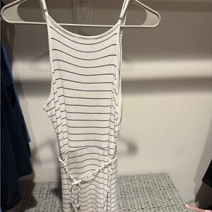 Chic midi dress with a wrap design. Features black and white stripes. Perfect for versatile styling. Never worn. Pet and smoke free home