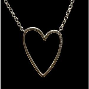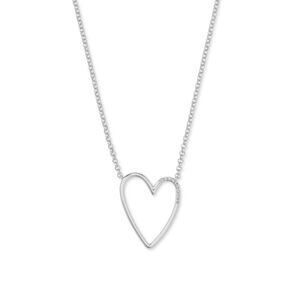 Necklace will dress up your style with a trendy meets feminine look. This romantic pendant features an asymmetrical heart silhouette that is studded with sparkling accents. This necklace is crafted in rhodium-plated brass and measures 16 inches in with a 2 inch extender, the pendant is 1.9 inches in length.