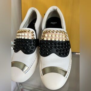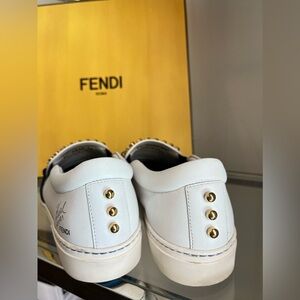 Fendi 36 Karl Loves Fendi Studded Slip-On Leather Sneaker